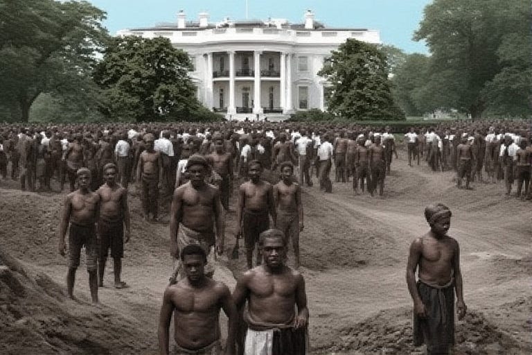 I like your use of AI for the powerful message it sends. The two I used AI to make for my Substack pale in comparison. Your image is a profound and sobering reminder about who labored to build the White House.